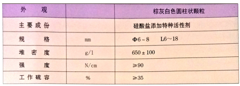化肥廠或化工廠生產(chǎn)原料氣中,壓縮機帶來的少量油質(zhì)對變換催化劑。合成氨催化劑及設(shè)備管道等造成污染,成為目待解決的問題,針對以上情況,我們開發(fā)出了高效脫油劑。其特點是以優(yōu)質(zhì)硅酸鹽為載體、按一定比例加入催化劑,經(jīng)成型,干煤,增燒,活化制成,具有孔隙率大附效率高,油容量大,機械強度好,不吸附硫化氫,在高溫,高壓及水泡情況下不粉化的特點該產(chǎn)品適用于各種氣體中油的吸附,保護變換催化劑合成氨催化劑等提高使用壽命